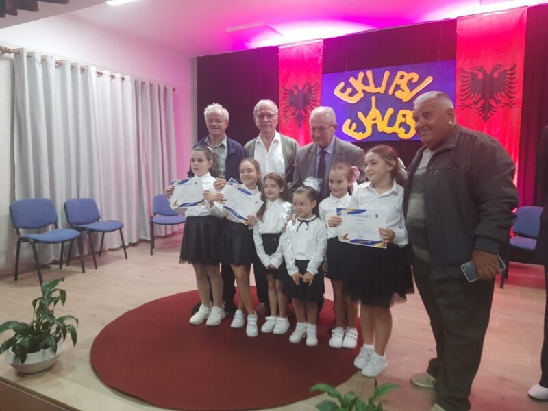 Poetët Albert Habazaj, Idajet Jahaj, Myrteza Mara e Ruzhdi Begaj me fëmijët e QKF, Vlorë që recituan poezitë e tyre, 23.10.2025