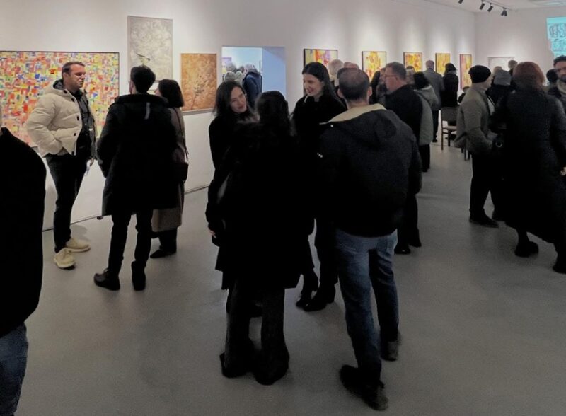 Hapja e ekspozitës “Rrugëtimi në dialog me kohën” mbushi hapësirën e Galerisë së Fakultetit të Arteve të cilën e udhëheq profesori Xhevdet Pantina. Me një rrymë njerëzish të larmishëm, kolegë arti, studentë, miq e admirues të punës së Agron Mulliqit. Sytë e tyre lëvizin në heshtje nga një pikturë në tjetrën, bisedat lindin, ndalen dhe rifillojnë si valë të buta mbi sipërfaqen e veprave. Veprat në heshtje djersitin valen e ngjyrave, renditjen e formave, poetikën shpirtërore. Ka një ngrohtësi kolektive, shenja respekti dhe kurioziteti, që i jep hapësirës karakterin e një fillese reflektimi. Një përbërje e tillë të pranishmish, e cila përzihet lehtë me ambientin, tregon se ekspozita ka tërhequr jo vetëm shikues të rastësishëm por dhe një audiencë të gatshme të hyjë në dialog kritik me punën.