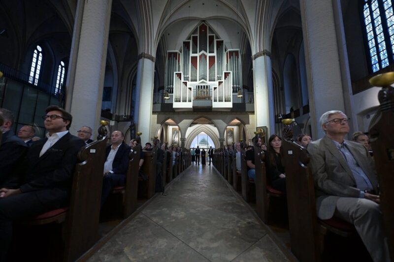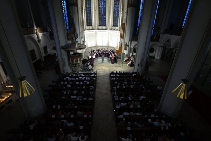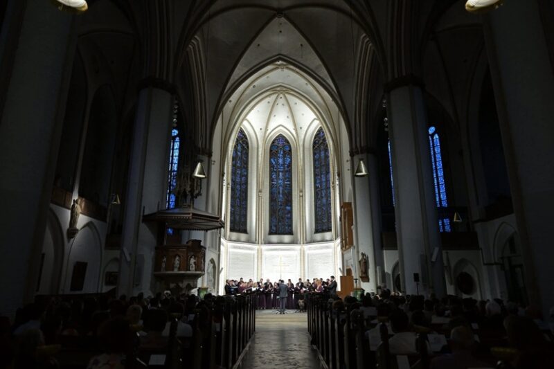 Në përfundim, dirigjuesi ngriti duart, kori ndaloi me frymë të ngrohtë, dhe zëri i fundit u rrumbullakua në akustikën madhështore, duke lënë mbetje tingulli që ende dridhej mbi muret e kishës. Publiku qëndroi i heshtur për një moment – një heshtje e bukur, plot respekt – para se të shpërthente në duartrokitje që e kthyen natën në festë të përjetshme shqiptare në zemër të Hamburgut.