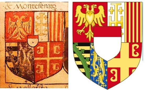Stema e markezëve të Monferrato: Bonifaci III Paleologu dhe Maria Arianiti Brankoviç.