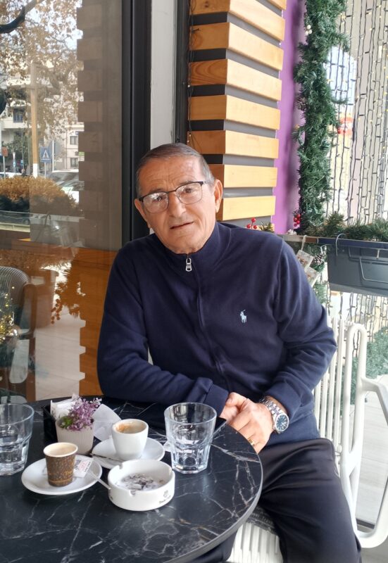 Por le të qëndrojmë te ndodhia që lindi kaq papritur për të gjithë ne miqtë e tij, madje edhe për klientët e shumtë. Ai si mik i yni, na përshëndeti dhe merr një karrige e ulet në tavolinë mes nesh. I pëlqen muhabeti i shtruar, ku ka copëza e përvojë jete, por edhe krijimtari letrare me bollëk.