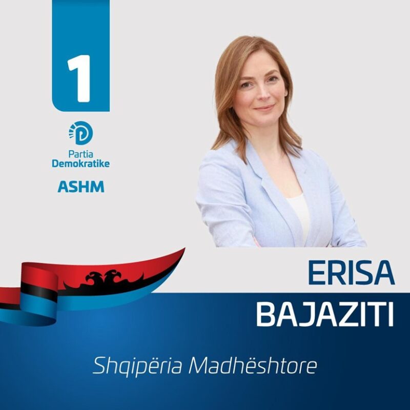Erisa asht këtu! Takojeni, flisni me të, sepse ajo din të dëgjojë si pak kush! Erisa asht kandidatja që duhet kthye në model, në shumës, në frymë! Më premtoi që nuk zmbrapset, që s`dorëzohet, se do të jetë këtu me ne e në Shqipninë tonë, që hajna të mrendshëm e të jashtëm të mos na e bajnë dheun tonë të pajetueshëm!