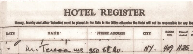 Vizita e parë e Nënë Terezës në Amerikë – 7 nëntor, 1960—Fatura e Hotelit