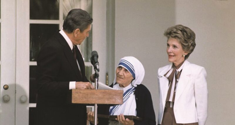 Janë absolutisht të pazakonta marrëdhëniet që Presidenti Reagan dhe bashkëshortja e tij Nancy – që konsideroheshin si ndër çiftet më aristokratë në Amerikë dhe ndoshta në botë – kanë pasur me Nënë Terezën, përfaqësuesen dhe mbrojtësen e më të varfërve në botë.