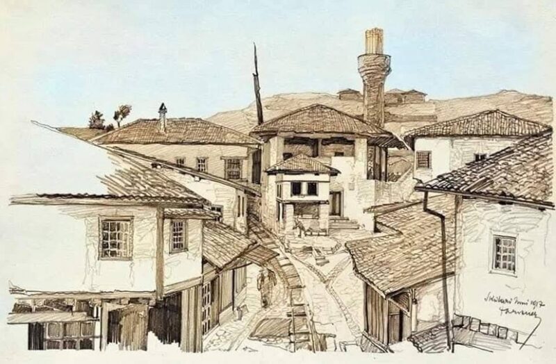 Në Shkodër, ai gjeti një qytet me ndërthurje të qartë osmane dhe perëndimore: rrugica të ngushta, çati të pjerrëta, tregje të mbushura me jetë dhe ndërtesa monumentale. Në Tiranën e asaj kohe, ende një qytezë e vogël, regjistroi me kujdes xhamitë, shtëpitë me oborre dhe rrugët me kalldrëm, duke e ruajtur përmes penelit një atmosferë që sot ka humbur. Kavaja e tij është më e qetë, me pamje tregjesh lokale dhe banorë të paraqitur në veshje popullore, ku vërehet qartazi dashuria e artistit për detajet e punimit dhe ngjyrat e gjalla.