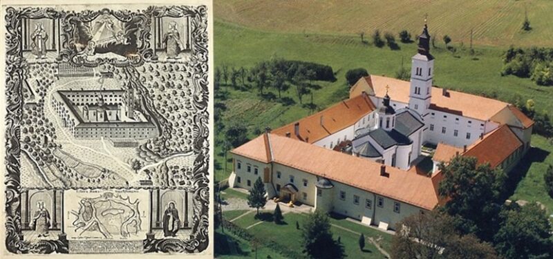 Litografi e Manastirit në Krušedol, realizuar në vitin 1775 nga Zaharija Orfelin.