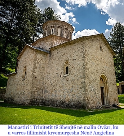 Fotografi aktuale e Manastirit me kishën në qendër, ku janë vendosur lipsanet e Shën Angjelinës, të Shen Stefanit, të Shen Johanit dhe të Shen Maksimit.