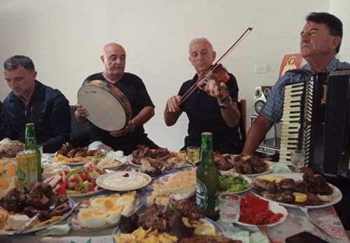 Ngjitemi kodrës drejt shtëpisë mikpritëse të Dedgjonajve. Të bie në sy gjelbërimi pambarim i luginës, pemët e stinës ishin në perfundim e sipër. Një gështenjë në cepin e oborrit qëndronte stoike, ndonse me kokrra edne të papjekura. Na presin plot respekt i zoti i shtëpisë Prendi dhe dy kuzhinieret e momentit Dranja dhe Rina. Nga Tirana kanë ardhur për të festuar Petro me Almën dhe Albi së bashku me të fejuarën. Së bashku me Rilendin bëjmë një shetitje rreth bahçes, e cila trego qartë se ka munguar kujdesi ndaj saj. Leka e viziton shpesh shtëpinë e të parëve, por është e pamundur të kthehet në gjendjen e dikurshme kur kujdesej për te nanë Prena, ku nuk mungonin pemët dhe perimet e shumëllojshme. Në këtë festë nuk mungojnë sa shokët e Prendit, muzikantët e talentuar Bik dhe Nest Pali si dhe Rrok Fazija, mjeshtri i fisarmonikës. I presim me gëzim këta instrumentistë të orkestrinës popullore që do t’a gjallërojnë për pak çaste këtë luginë të heshtur. Takohemi me Bikun, violninistin e njohur, Rrokun fisarmonicistin dhe Nestin që i bie dajres.