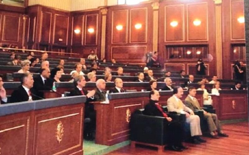 Autori, në kapacitetin e Drejtorit Ekzekutiv të Këshillit Kombëtar Shqiptaro-Amerikan, me kongresistin Eliot Engel dhe me Presidentin historik të Republikës së Kosovës, Dr Ibrahim Rugovën, 2005 në Kuvendin e Republikës së Kosovës