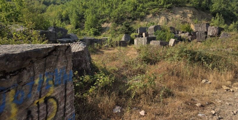 Diku, pas nja një ore kacavjerrje nëpër male, në tre a katër vende, anës rrugës janë hedhur blloqe kubikë mermeri me brinjë nga 1 në 2 metra. Duket si mermer i zi. Por, si e qartësova më vonë, është mermer i kuq, i nxirë nga myshqet me kalimin e kohës. Mbi mermerat duken shenjat e prerjes së blloqeve të mermerit të kohës së Diktaturës me brima të thella çpuar me baromina të gjata. Sa duket ai mermer sot nuk i intereson askujt. Kur kishte heronj, s’kishte mermer. Tani që mermer ka, s’ka heronj për tu bërë shtatore.